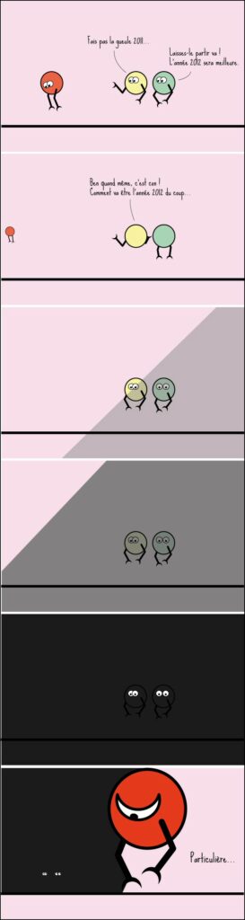 Le mois de décembre ? Vous y êtes forcément. Un dessin suivra dans la soirée pour présenter l’année 2012, un dessin à la con bien sûr.