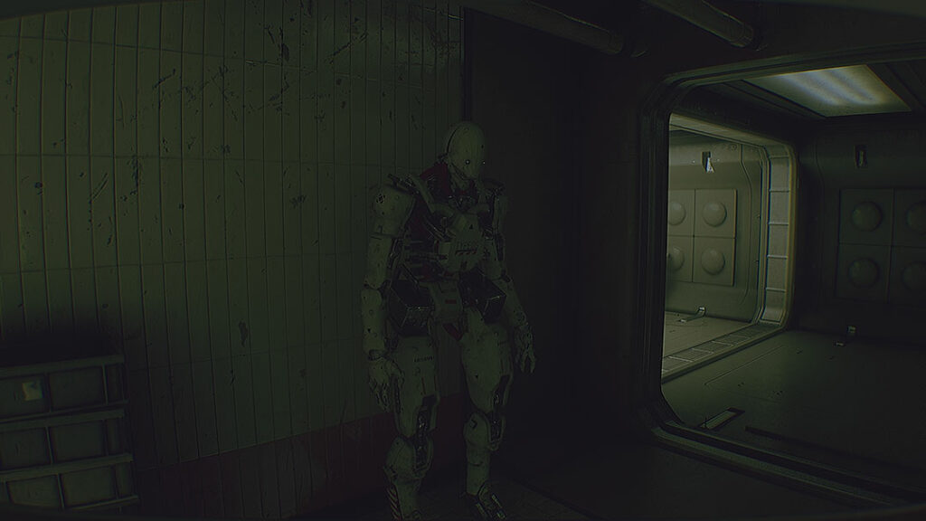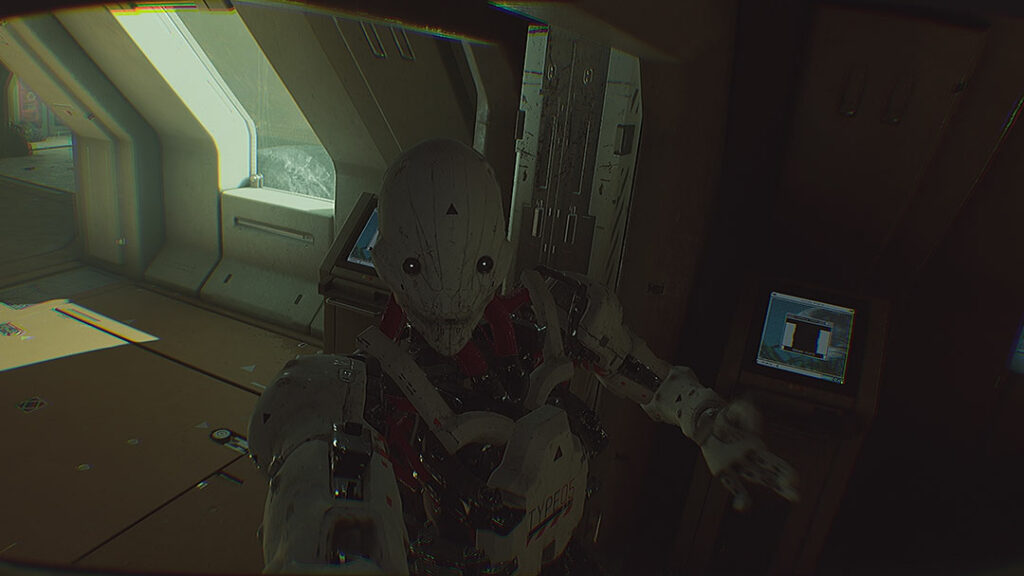 Deux robots, deux ambiances. Le premier vous propose de vous aider car c’est un robot d’accueil. Il a d’ailleurs une voix très ressemblante à celle de Wall-e. Le second, très perturbant (et perturbé), ne vous attaquera pas si vous êtes silencieux à côté de lui et surtout si vous lui foutez la paix (une paix à 5 mètres). Dès qu’il se réveille, c’est une autre histoire.