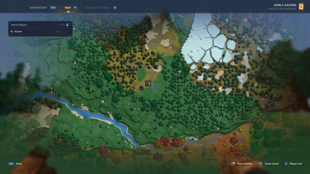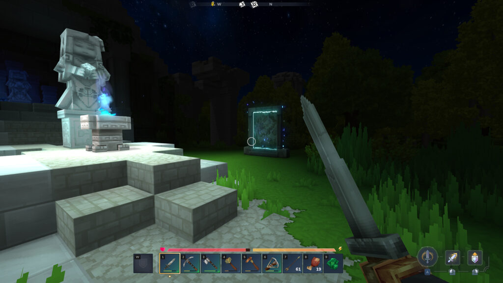 Pour le moment, j’ai pu installer 4 téléporteurs. Un chez moi évidemment, 1 dans la zone enneigée, 1 dans le désert et 1 à côté du temple oublié histoire de ne pas me taper 2000 km à chaque fois.