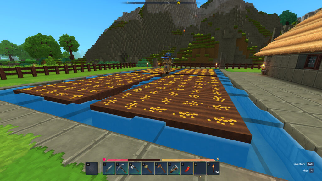 Les légumes poussent assez vite et on peut avoir rapidement de nouvelles variétés. L’argent du jeu, comme indiqué plus tôt cette semaine, est l’essence de vie. Il faut 2 essences de vie pour avoir des graines de salade, cela rapporte un peu plus lorsque la salade est prête. Et ainsi de suite, j’améliore assez facilement l’établi de ferme. Sur le dernière capture, on peut voir au fond des lueurs vertes qui représentent les graines éternelles (j’en ai 4 ou 5 pour le moment). Ce sont des légumes qui n’ont pas besoin d’être replanté, un peu comme dans la vraie vie.