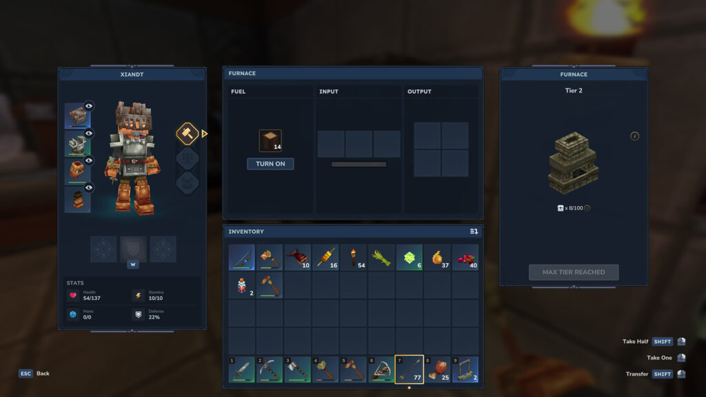 J’ai amélioré le four en Tiers 2 (le max pour le moment). Ainsi je peux avoir une file de 3 minerais au lieu de deux.