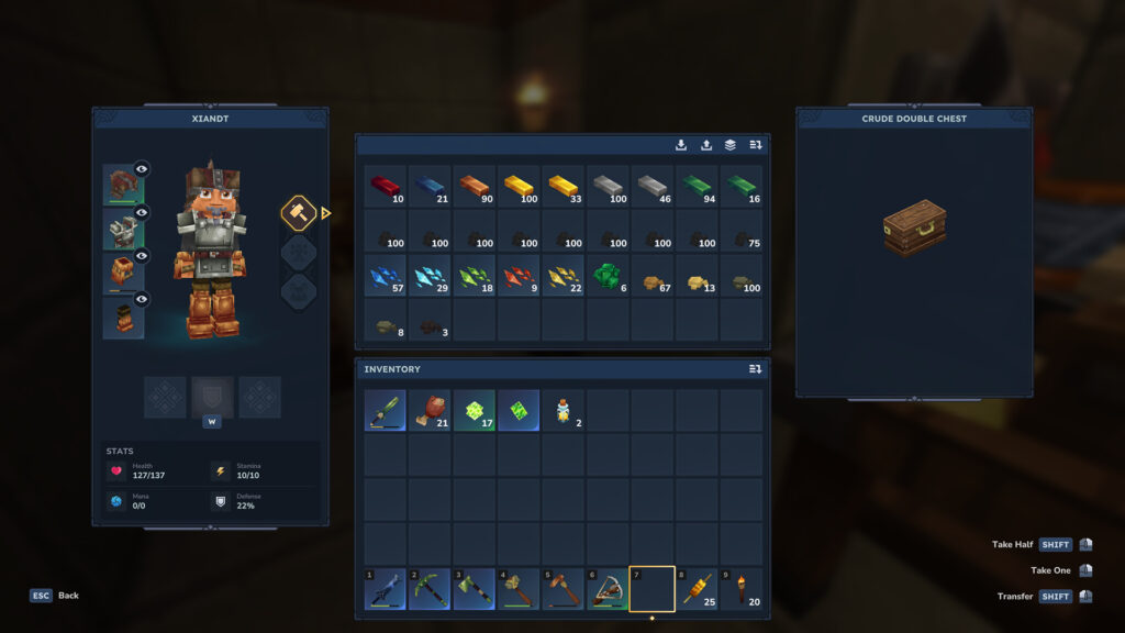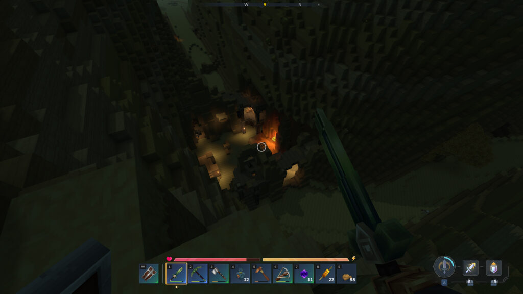 Je commence à avoir de nombreux minerais. J’améliore pas mal mes armes et mon équipement ces temps-ci. Je meurs moins souvent mais au moins 1 fois si je ne fais pas gaffe.