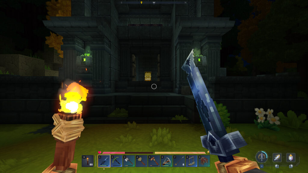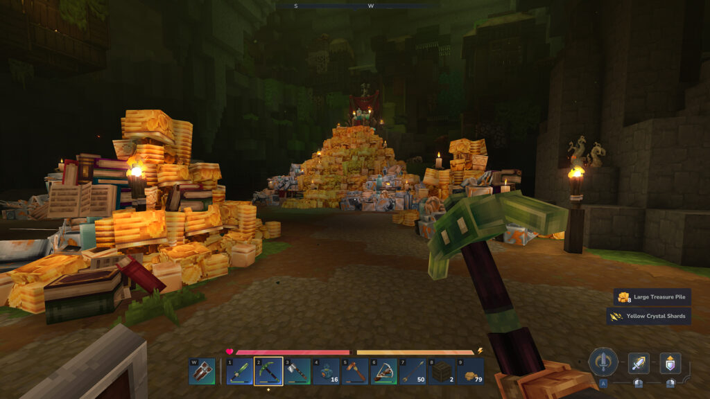 Une torche qui éclaire parfaitement sous l’eau… Il me semble que cette magie n’existait pas pour Minecraft. C’est un peu dommage, pratique, mais dommage. J’aurai dû le savoir hein car ma lampe torche dans la main gauche reste allumée… Oui je suis con.
