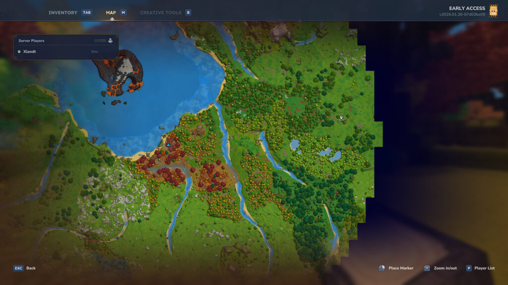 La carte a beau être belle et assez précise (de loin, un peu moins de près), elle n’est jamais complète. Le rayonnement du joueur correspond à ce que vous voyez sur cette capture. Si vous allez loin de votre maison, ce qui est au loin sera caché même si vous l’avez découvert.