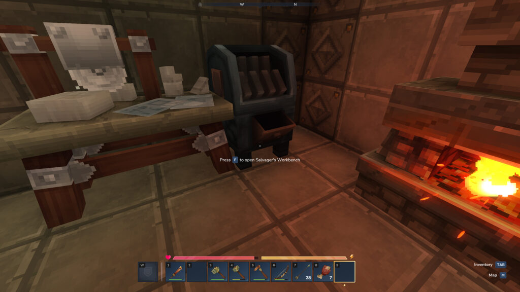 Le Salvager’s Workbench (broyeur) sert à briser les outils ou armes endommagés. Pratique si vous ne pouvez/voulez pas fabriquer des kits de réparation (recette pénible car il faut du fer).